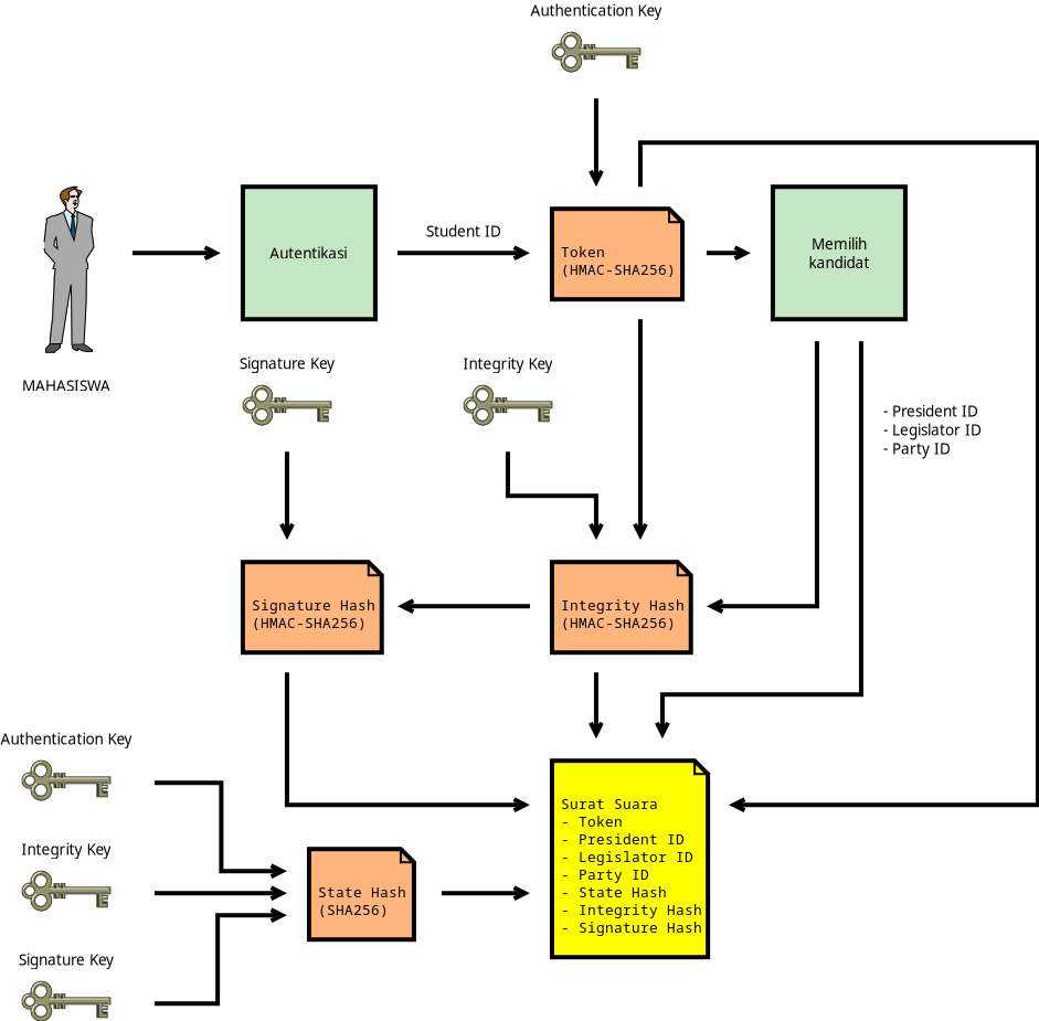 Kunci ini wajib dirahasiakan karena menyimpan informasi korespondensi antara mahasiswa dan surat suara
